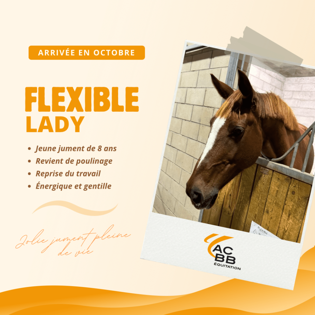 Cette jument pleine de vie et d’énergie a à cœur de bien faire. Sa polyvalence et son enthousiasme en font une partenaire particulièrement attachante, idéale pour les cavaliers souhaitant se perfectionner aussi bien à l’obstacle qu’en dressage. Toujours volontaire, Flexible séduit par son tempérament généreux.